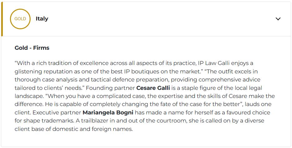The complete ranking is available at the following link: https://www.worldtrademarkreview.com/rankings/wtr-1000/country/italy